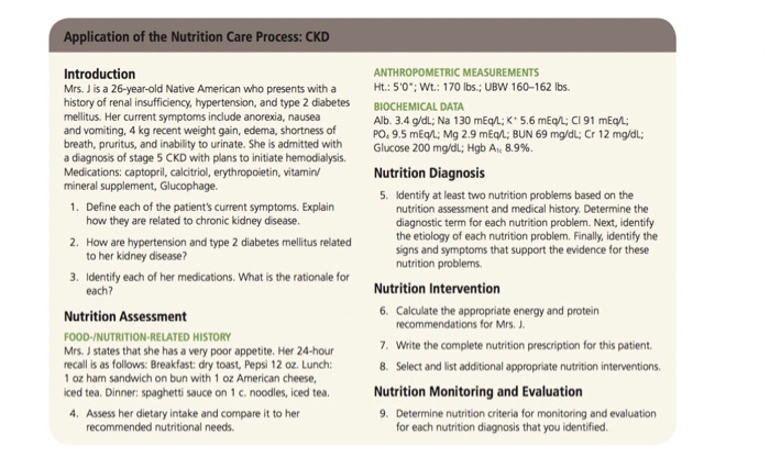 Solved Application Of The Nutrition Care Process Ckd Chegg Com