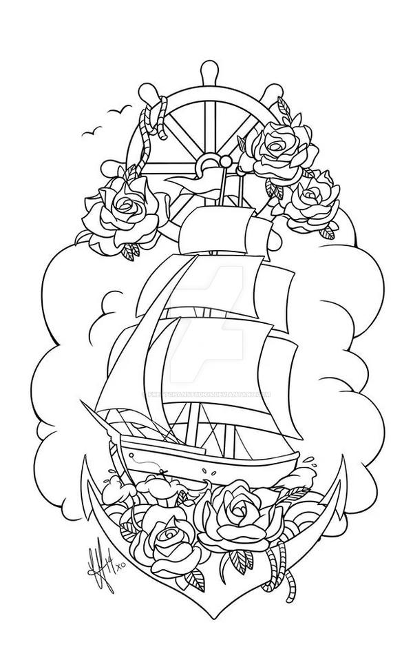 pirate ship drawing tattoo
